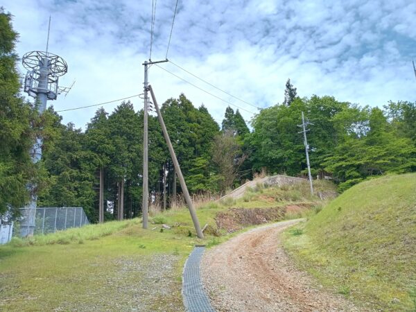 Uターンして管理道路に戻る前に、こちらにも電波塔らしきものがあったので撮影しました。小石の多い林道であることもよくわかると思います。
