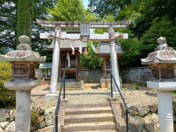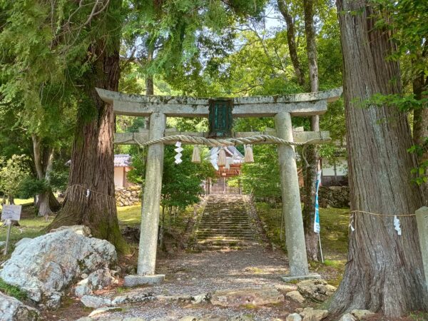 まずは「都々古和気神社」です。正直近場の神社に面白いところがあるとは思えないのですが、グーグルマップのクチコミで行っても良いかなと思えるところを選びました。これは「鳥居」ですが、左右の立派な御神木が素晴らしいですね。