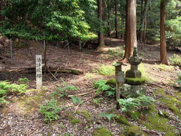 「清浄殿塔」という石碑が建っているのですが、右に見えるのは宝篋印塔なので、塔の跡地のことだと思われます。