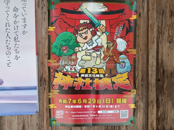 「社務所」に「第13回 神社検定」のポスターがありました。八百万の神様がいる日本の神社検定って、出題範囲が広すぎません?