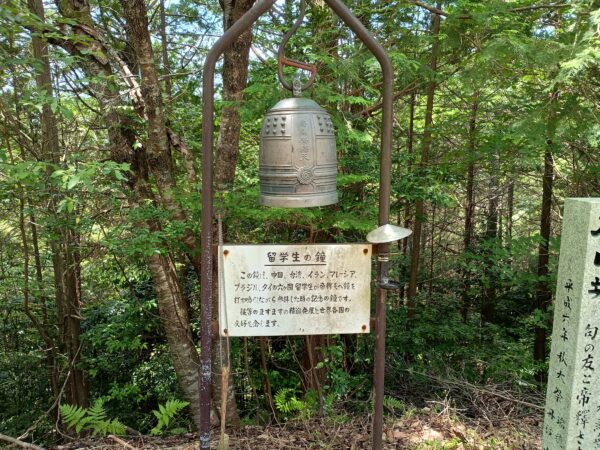 「留学生の鐘」です。中国、台湾、イラン、マレーシア、ブラジル、タイの留学生がお参りした記念の鐘だそうです。