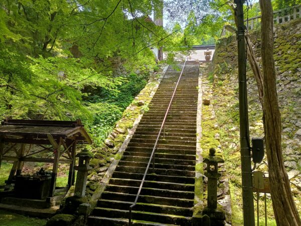 参道の最後の階段に到着しました。鐘をスキップしたので、駐車場から約15分で到着しました。