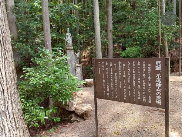 階段を登ってお参りするのが正しいのですが、左手に気になるものが見えたので行ってみました。「厄難・不運除去の霊場」の説明看板がありました。作法通りにすれば不運が飛んで行くみたいですね。
