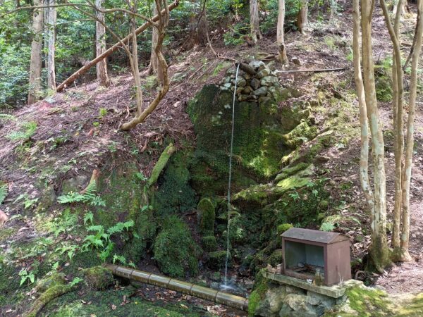 修行用の滝ですね。小さい石像があるのですが苔むしていてよくわかりません。おそらくお不動様だと思います。