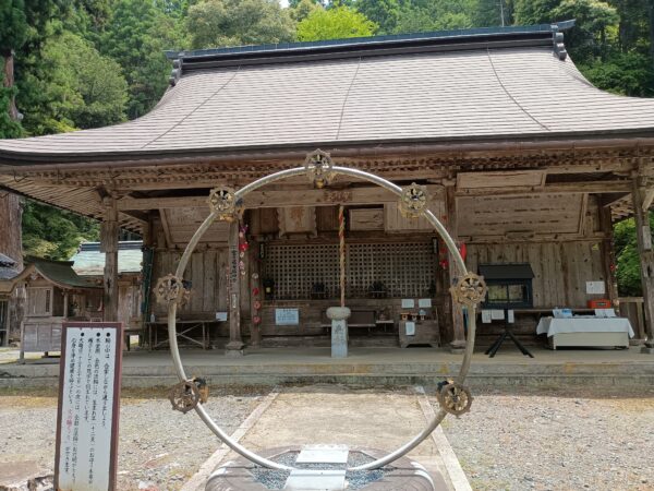 結局階段を登らず、左側から迂回して「本堂」の前に来ました。この輪の中は合掌して通るようです。茅の輪のようなものでしょうね。