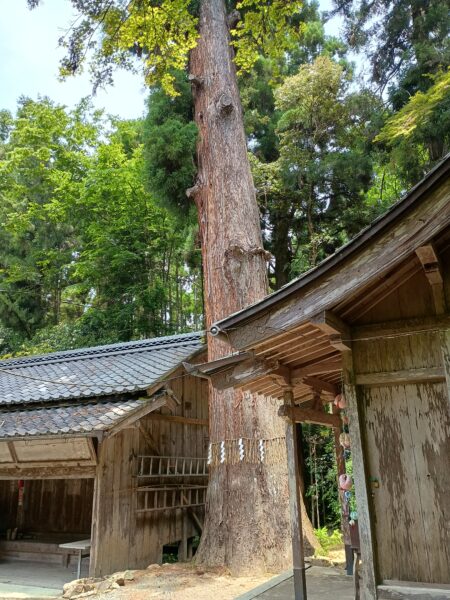 御神木・・・、あれ寺院だと何て言うんでしょうね。でも神社みたいな飾りが付いてるしなあ。