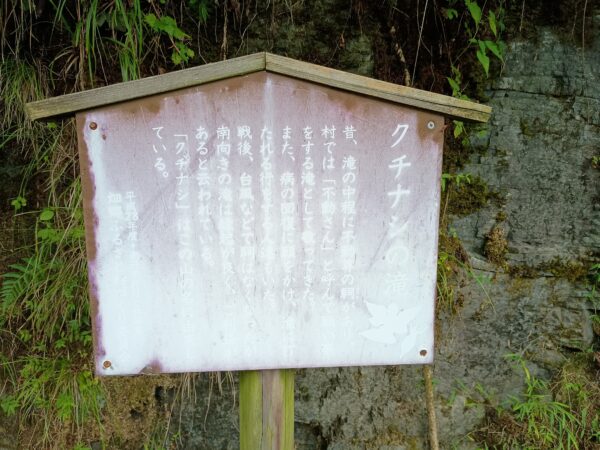 最初は「クチナシの滝」ですが、2022年7月に訪問しています。その時の写真と比べると、説明看板が色褪せていますね。