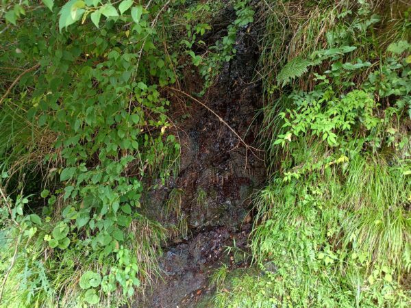 道路のエスケープゾーンに滝があるのですが、最近ゲリラ雷雨が多いので水量も豊富かと思ったら、かなり少なかったです。「クチナシの滝」はグーグルマップからマーカーが消されているのですが、滝としての見映えが低下したから消されたんでしょうかね。まだ説明看板も設置されているので、いちおうマーカーの追加申請をしておきました。