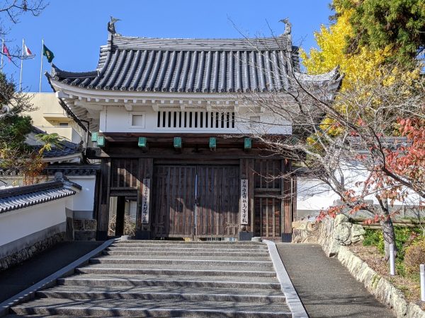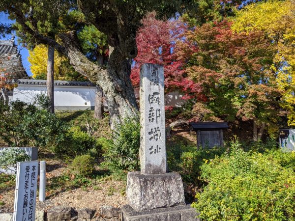 はじめはこれが「園部城址」だと思ったのですが、グーグルマップに表示される位置と違うので付近を調べると、「京都府立園部高等学校」の門の横に石碑がありました。登山しなくて良いので楽だったのですが、学校なので中に入ることはできませんでした。
