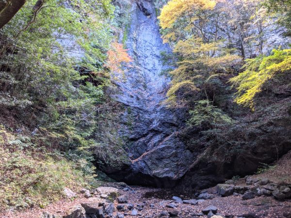 「琴滝」は、水が涸れていて滝状態じゃなかったのですが、この青い岩肌に水が落ちてきていたら、さぞ壮観だろうなと思いました。