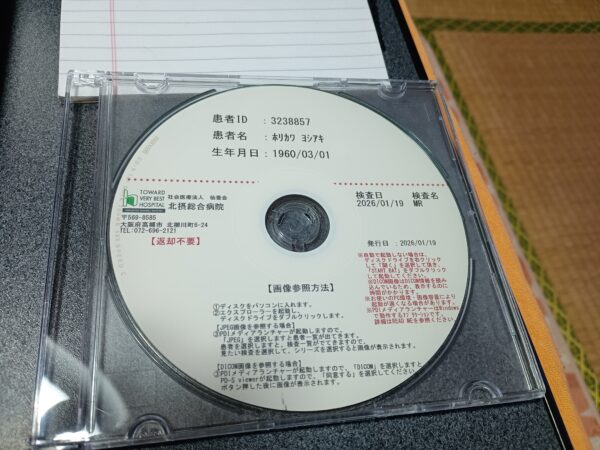 MRIの撮影データはCDに焼いてくれて、これを1月22日(木)に、脳神経内科に持って行き、脳波測定の結果と合わせて診断を受ける予定です。