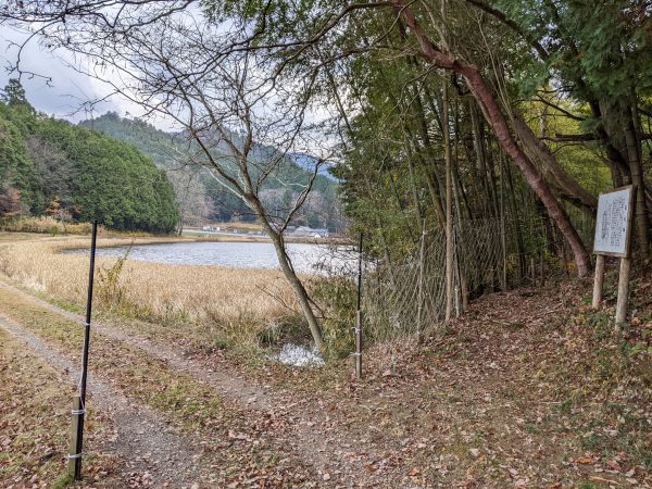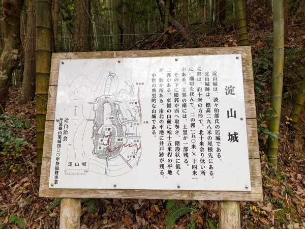低い山なので、景色はまあまあって感じです。「淀山城址」のある山は大きな池の横にあります。案内看板がなかったら絶対にたどり着けませんね。