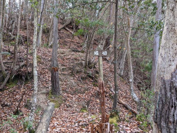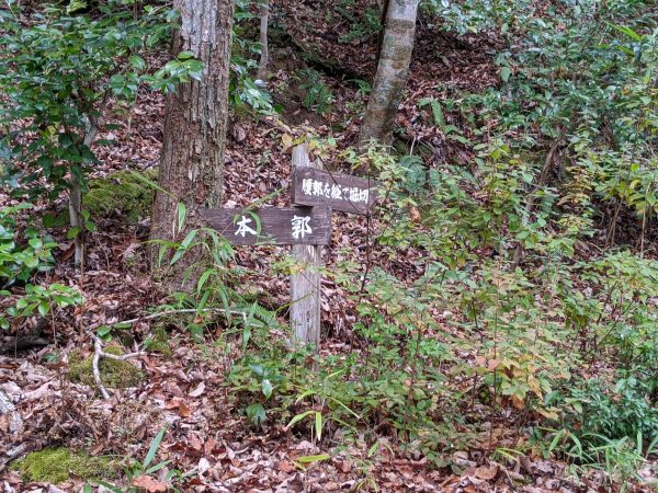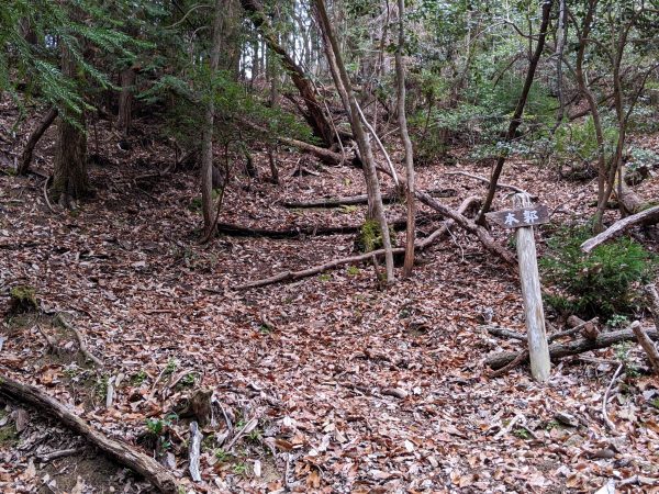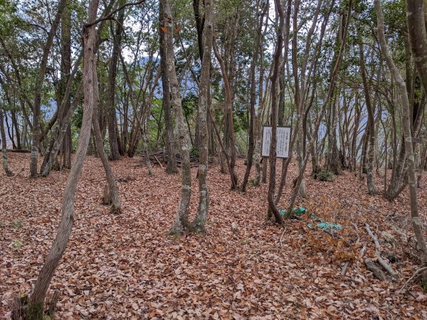 こちらも城址への道には適宜案内看板があります。落ち葉でふかふかだったり、倒木があるので注意しながら登りました。