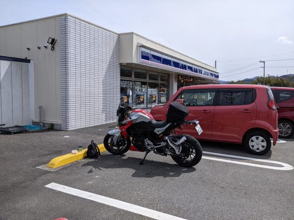 昨年、八上城址でコーヒーミーティングをやったのですが、それの1泊2日版ですね。集合は13:30に「ローソン篠山長安寺店」です。わたしが到着したときは、藤井さんも前田さんもいませんでした。