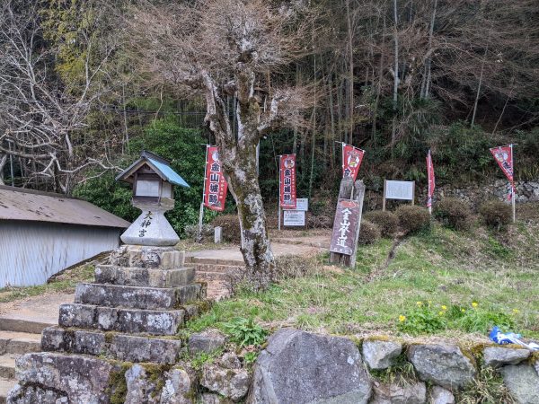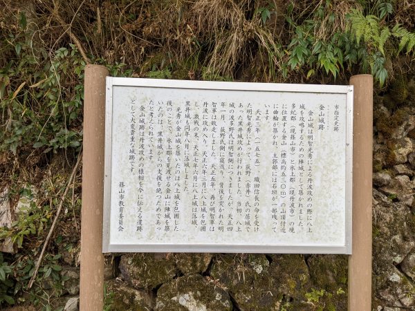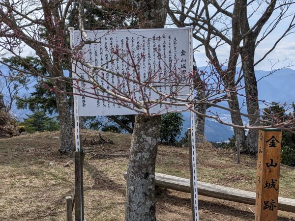 前田さんが遅刻してきたので、インスタントコーヒーと水の調達を押しつけ、14:00頃に「金山(きんざん)城址」に向かいました。