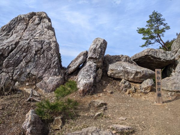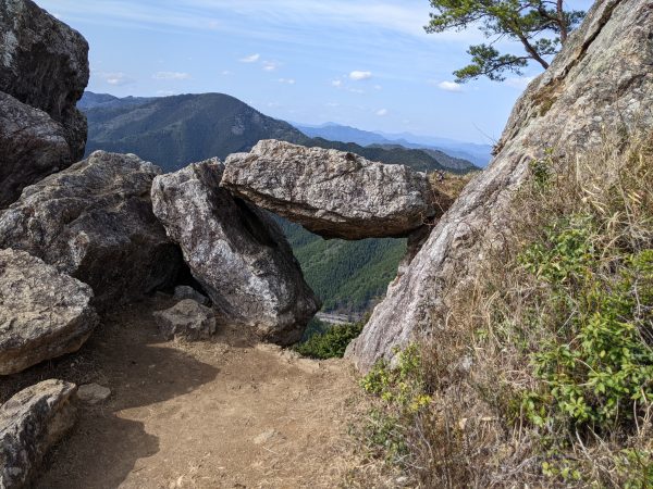 気を取り直して「鬼の架け橋」です。道を戻らなくても城址から向かえます。写真だと大きさがわかりにくいですが、想像していたのより小さかったです。周りにはもっと大きな岩がゴロゴロしています。
