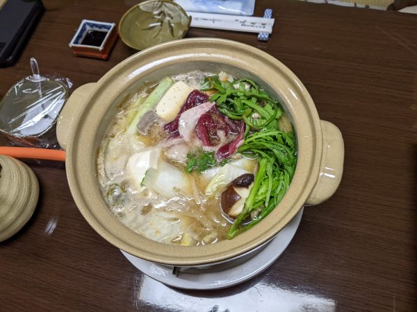 「金山城址」を後にしたら、まっすぐ「籠坊温泉 浪速館」に向かいました。夕食のメインはぼたん鍋です。年を取るととても完食はできません。
