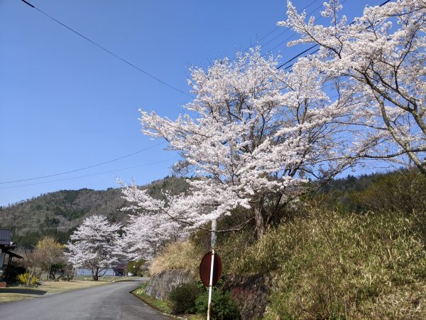 「静原ロードパーク」に戻ってきて、ここで昼食を食べました。今日の美山町は桜が満開で、風が吹くと花吹雪が舞っていました。
