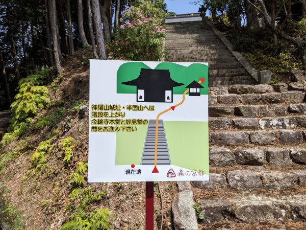 「神尾山城址」への登山道は「金輪寺」の境内に入り、「本堂」の右手から入ります。案内看板もあって、かなりの親切設計です。