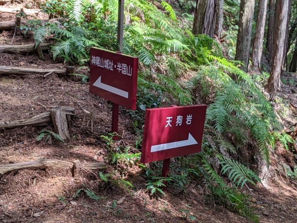 登山道がちゃんと整備されていて、案内看板もあります。「天狗岩」には帰りに立ち寄りました。