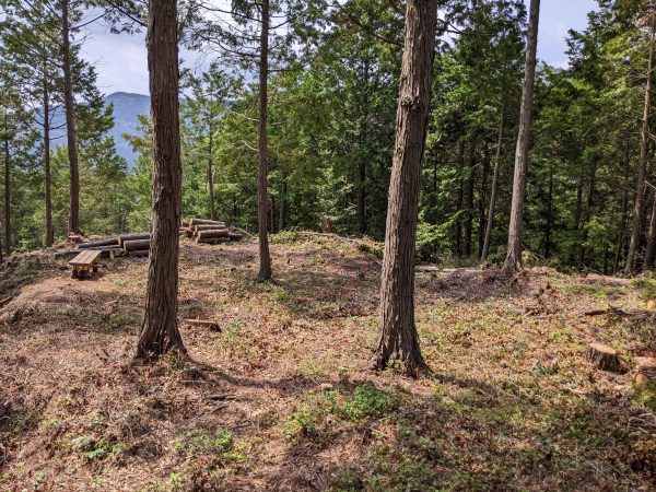 おそらくこの辺りが「本丸」跡と思われます。完全に林状態ですね。案内看板等がないので、先ほどの説明看板からの距離感での推測です。