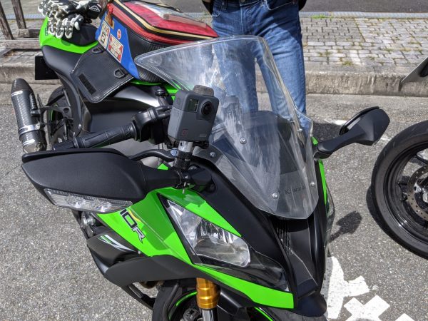 前田さんのZX-10Rです。この後、インカムの接続テストを行いましたが、前田さん側のマイクやスピーカーがおかしくて実用になりませんでした。ケーブルが断線しているかも、てことで初期不良返品・交換となりそうです。