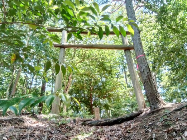登り始めてから約70分(だいたいグーグルマップのせい)で、「本郭」跡に到着。どうやら「白玉龍王」を祀る神社(?)になっているようです。