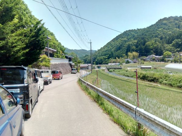 「笑路城址」の登山口に到着。農道なので道の端っこに駐めています。「笑路城址」については、亀岡市の公式YouTubeチャンネルに「笑路城跡に登ってみた」という動画がアップされていたので事前学習はバッチリです。