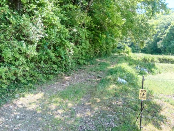 電気柵と害獣対策フェンスを通過したら、山の中を進みます。分岐路には案内看板も設置されています。