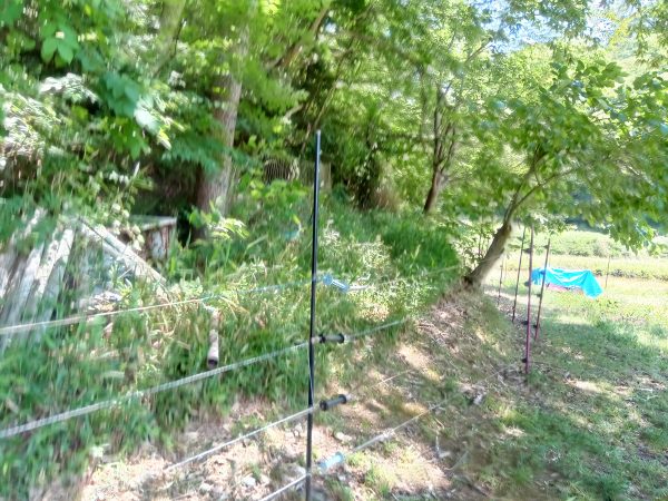 登り始めると、電気柵が2つ、害獣対策フェンスが1つあります。すべて一度外して、また閉じて通過します。