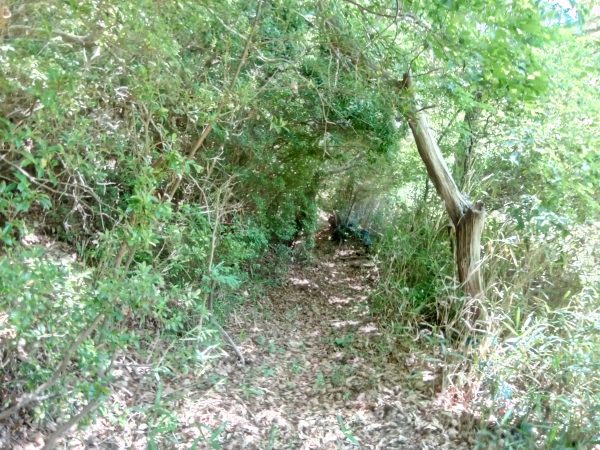 帰り道は、最初のうちは尾根伝いに進んでいたのですが、あの傾いた木のある尾根にたどり着くことができず、最後は川(みたいな場所)を降り、「別院保育所」の横に出てきました。「甘露寺」からかなり西に出たので、てくてく歩いて戻りました。「本郭」跡から「甘露寺」に戻るのに約50分かかりました。「東掛城址」はひたすら迷子の城址でした。