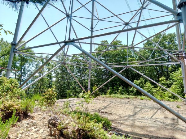 なにやら説明看板の残骸があったのですが、まったく読めません。城址か鉄塔のどちらかの説明が書かれていたのでしょうか。