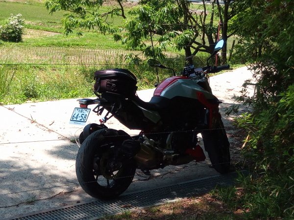 バイクを置いた場所に戻ってきました。もちろん害獣対策フェンスと電気柵はちゃんと閉めました。