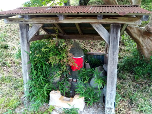 登れそうな場所から城山に登りました。上に見えた小屋のようなものはお地蔵様の祠でした。