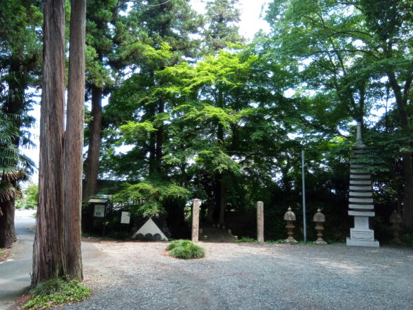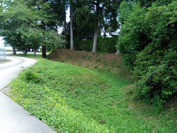 お寺の裏は平坦な広場で、「堀切」跡と思われる部分もあります。