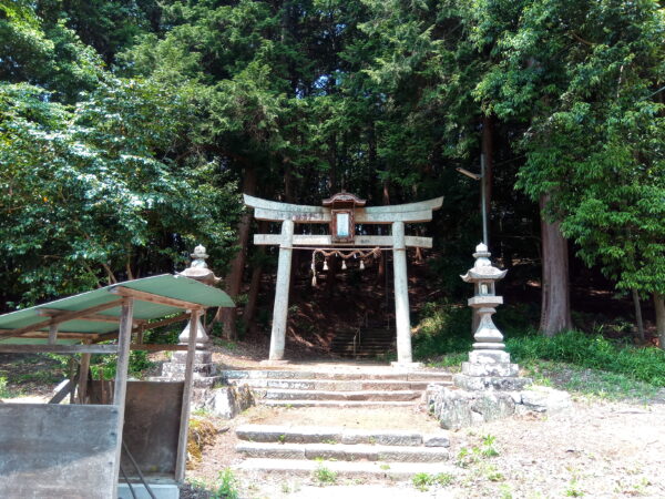 次は「愛宕山城址」です。地図では「愛宕神社」が城址に該当するみたいです。攻城した方のブログの記事は神社名が全然違っていて混乱したのですが、グーグルマップを信じました。バイクは、神社の駐車場に駐めました。(暑いので木陰に駐めています。)