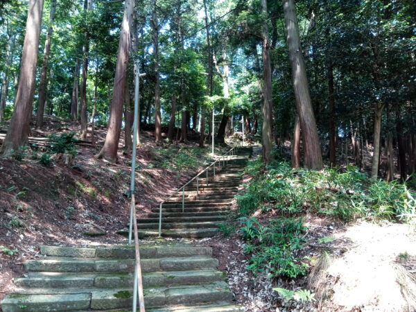 参道の登り口にある神社の説明看板には、戦国時代は砦だったらしいことが書かれていましたが、「愛宕山城」という名称は記載されていませんでした。