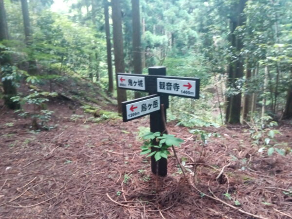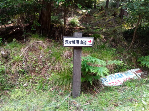 「鬼ヶ城城址」まで約800mにある案内看板です。ここから先は比較的緩やかになります。