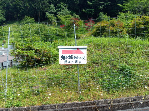 駐車場から「鬼ヶ城城址」まで約2.2kmの登山です。この案内看板は、駐車場のすぐ前にあります。