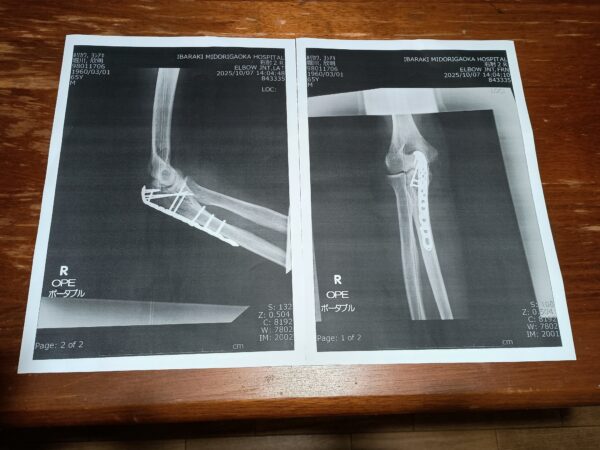 手術の翌日なのに包帯を外されました。患部には透明なシールが貼られているだけです。医学の進歩ってすげー。担当医から術後のレントゲン写真をいただきました。