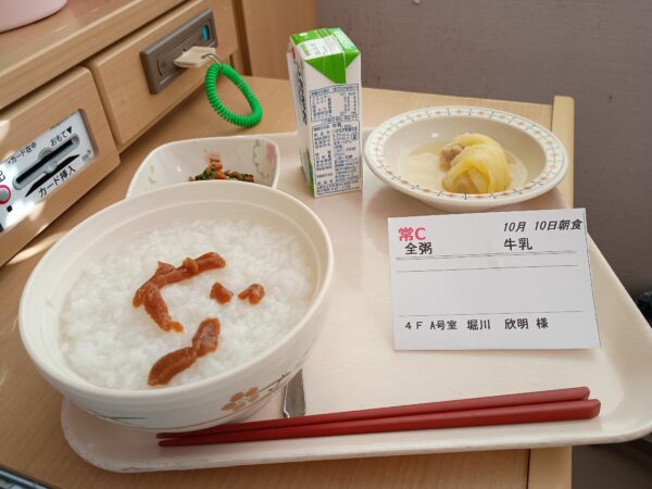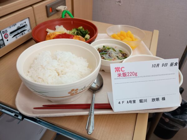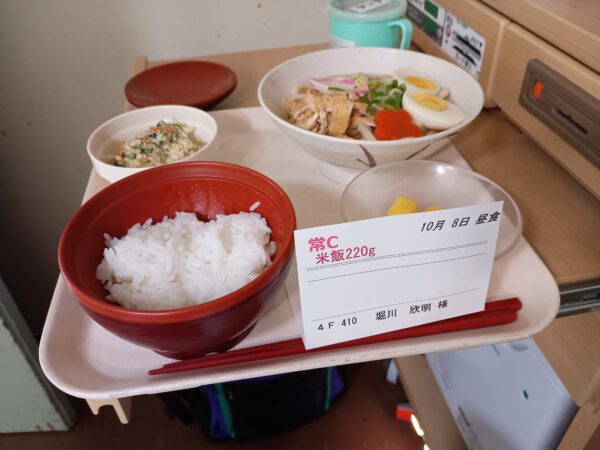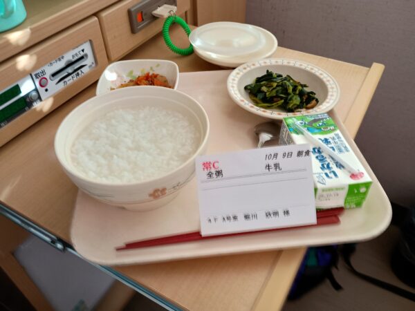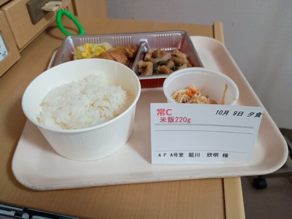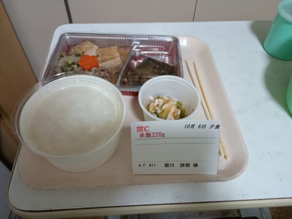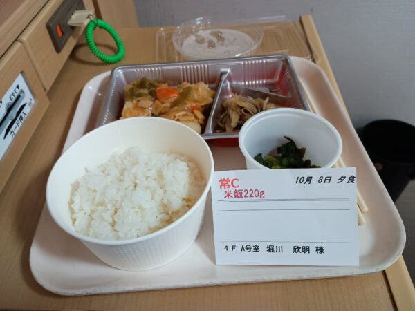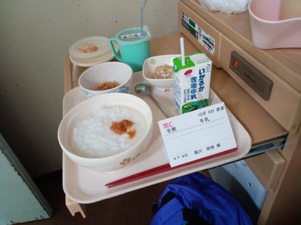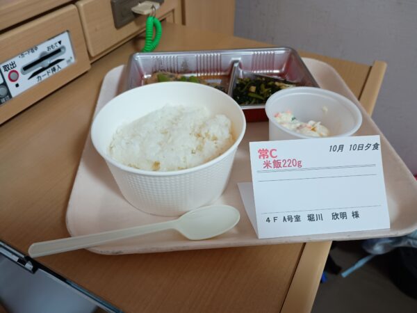 せっかくの機会なのでブログにあげたいのですが、施設は撮影禁止のため、簡単な経緯と病院食の紹介となります。